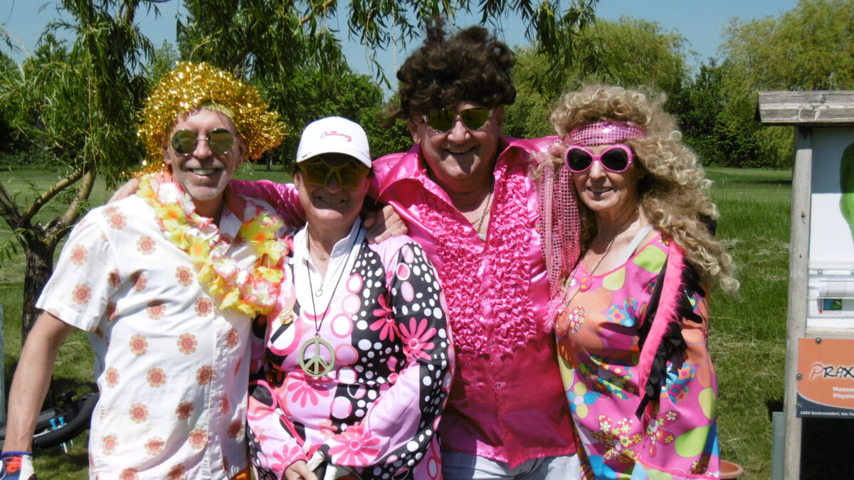 Tolles Wetter und noch tollere Kostüme prägten den Samstag im GC Guntramsdorf. Zum belieten „Bernie’s 9-Loch Texas Scramble Turnier“ erschienen die Akteure ganz dem Motto entsprechend im 70er Jahre Style und zwischen Glockenhosen und Hippies stellte sich richtiggehend eine nostalgische Atmosphäre ein. Gleich 88 Teilnehmer zeigten in den Retro-Outfits ihre Fähigkeiten am Platz und gaben im Anschluss auch auf den Fotos ein richtig gutes Bild ab.