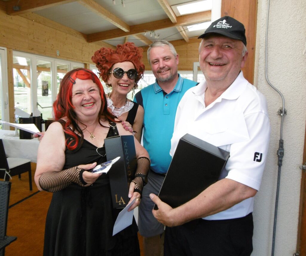 Den Bruttosieg schnappten sich schließlich Stefan Florian und Patrick Volkmann. Netto gingen die Preise an Sonja Binder und Georg Vorlaufer, vor den schlaggleichen Teams bestehend aus Angelika Moritz und Alfred Kolb, sowie Denisa Zängl und Thomas Schiffert. Nach der Preisverleihung gab es schließlich noch die Wahl des besten Kostüms. Der Preis ging unter viel Beifall und Gejohle an GC Guntramsdorf Mitglied Willi Zimmel, der sich äußerst leicht bekleidet auf den Golplatz wagte.